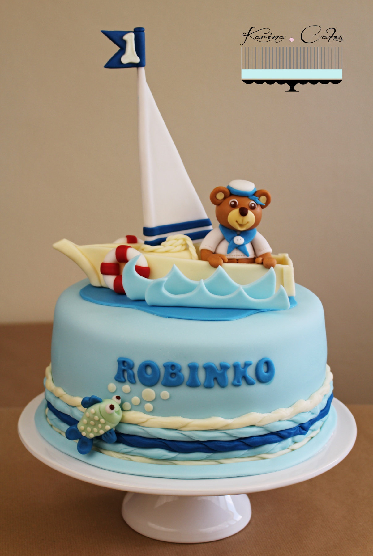 Macko sa vracia – ako námorník pre malého Robinka. Tortu som robila pred viac ako rokom. Celkom ma potešilo, keď som tortu v takmer vernej kópii neskôr videla aj inde na internete. Najdôležitejšie však je, že torta chutila Robinkovi, ktorý sa z nej veľmi tešil.